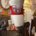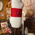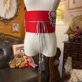 名古屋帯 リメイク サッシュベルト 飾り帯 和洋折衷 ハンドメイド レトロ 古着 L〜LL対応 紅冴ゆる ROB-179