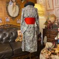 【着物リメイク ワンピース|洗える化繊素材&名古屋帯サッシュベルト付き レトロ 古着 ハンドメイド 静寂に咲く草花 KW-1154】