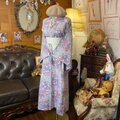 着物リメイク ロングワンピース|洗える化繊素材&帯サッシュベルト付き 花咲く風をまとう、ラベンダーの彩り KW-1156