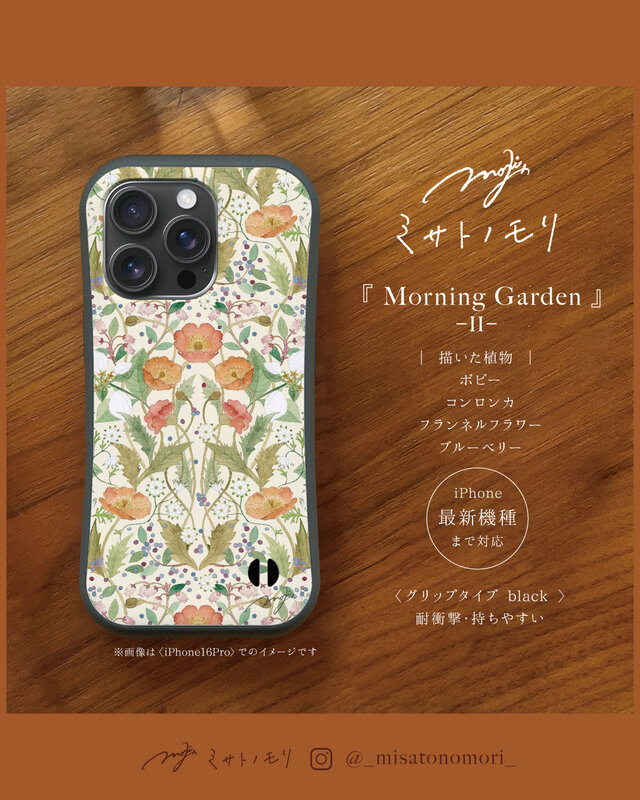 ミ サ ト ノ モ リ|オリエンタルな花柄の持ちやすいスマホケース。名入れで特別感。iPhone17(グリップ耐衝撃)月末〆受注