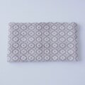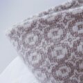 オーバーショットという技法で、上品なグレージュの地色に白い糸で花のような模様を織っています。