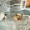 ガーネットカラーとクリアラインストーンが煌めくゴールドトーンリング。