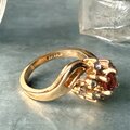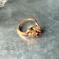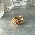 R407-ヴィンテージリング U.S.A. Gold Tone Garnet Color & Clear Rhinestone