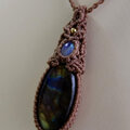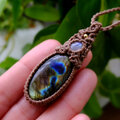 マルチカラーラブラドライト(マダガスカル産)・ムーンストーン(スリランカ産)1点もの マクラメ編みペンダントネックレス 3660