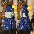 【 着物 ミニ丈 ワンピース ドレス 和ロリ 2部式作り帯 京袋帯リメイク 和洋折衷 洗える 化繊 ハンドメイド レトロ 古着 単衣 freeサイズ 星月夜に咲く、凛とした花 MKW-45 】