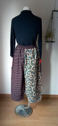 先ほど素敵な手ぬぐい柿渋染めバルーンスカートをいただきました 染めもきれい手ぬぐいのお蔵柄が可愛らしい一着です 上部とサイドの藍染め浴衣地もアクセントとなり感じ良く仕上げてくださいました フンワリと軽い可愛らしいバルーンペチワンピ風としてもこの夏大活躍です ありがとうございます
