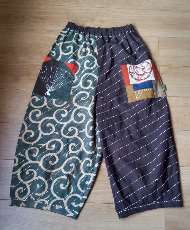 柿渋染め大判風呂敷刺し子パンツ 木綿