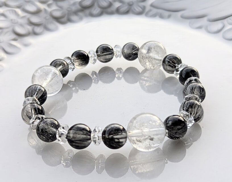 『デトックス&グラウンディングのクリスタル✨ブラックトルマリンインクォーツ&クリアクォーツのブレスレット』