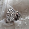 アンティークレースにビーズ、ラインストーン、淡水パールなどを盛ったゴージャスな大人のブローチです。