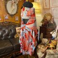 【 振袖 着物 ロングワンピース ドレス リメイク 洗える 化繊 パールつけ襟 フリルシフォン帯揚げ 和洋折衷 ハンドメイド レトロ 古着 紅霞に舞う花扇 KW-1164】