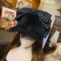 ふんわりと肌触りの良い黒ファーキャップに、レトロなドット柄リボンをあしらった、大正浪漫薫る特別な一点です。クラシックな白のドット柄が配された大きなリボンが、最大のチャームポイント。甘すぎず、大人の遊び心を感じさせるデザインです。どこか懐かしく、それでいて新しいデザインは、被る人をまるで映画の主人公のようなロマンティックな雰囲気で包み込みます。