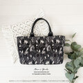 《上品な花模様 織り》おしゃれな チャコールグレー ラメ アイボリー 花柄 小柄 革 トート 手提げ バック
