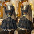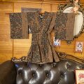 【 着物 ミニ丈 ワンピース ドレス 和ロリ 2部式作り帯 名古屋帯 リメイク 和洋折衷 洗える 化繊 ハンドメイド レトロ 古着 単衣 茶褐の夢紡ぎ MKW-48 】