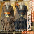 着物 ミニ丈 ワンピース ドレス 和ロリ 2部式作り帯 名古屋帯 リメイク 和洋折衷 洗える 化繊 MKW-48