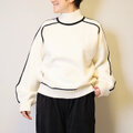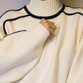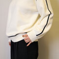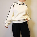 【2025新作】ライン入りバイカラーゆったりめニットセータープルオーバー(ホワイト)25053WH