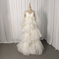 人気上昇!ウェディングドレス キャミソール シャンパン色 シースルー袖 ラッフルフリル 可愛い エアリー感 前撮り