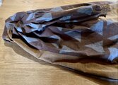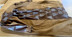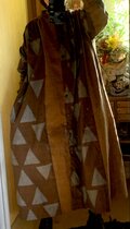 茶系地にグレーの大きな三角模様が可愛らしい生地と金茶無地を組み合わせました。
