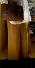 数えてみたらなんと7着目。詰まった首元が好きなのですが縫製や着用時の便利さの確保の難しさからか和物生地のリメイクデザインでみかけることが少ないです。しかし今回は私の好みにベストフィットでした。長時間でも心安らかに着ていられそうです。一つ残念なのは後ろ襟元下の皺。でもプラス要素一杯なので気にしないことに。 また同じようなデザイン期待しています。
