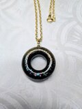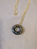 直径3センチのリング形の木地に黒漆を何度も塗り重ねたペンダントです。