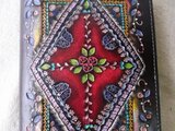 表装には、刻印を排列したのちに拭き染めで自家染色を施しています。