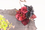 赤い薔薇と黒い紫陽花の髪飾り 花束風 ブーケタイプ フラメンコ フローレス 薔薇 レッド 赤 黒 ブラック 髪飾り 赤 黒