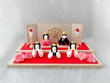 少しのスペースで華やか可愛く飾れる おひなさま 百花(ももか)の五人飾りです。