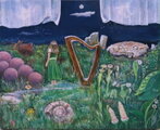作品の色味や明るさについては、再生する各機器の色彩設定等による誤差があることをご承知おきください。また、直射日光の当たる場所や湿度の高い場所、夏のエアコン、冬ストーブ等の近くでの展示はお控えください。本作に関わらず絵画作品全般における注意点となります。