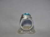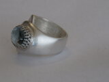 リングのサイズは14号弱、重さは14g、最大幅は22mm、手のひら側は7mm、金属部分は純銀です。