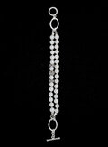 多連のジュエリーには華やかさに加えてバングルのような存在感が生まれ、コーディネートに一点加えることでラグジュアリー感を添えます。シルバーのバングルとの重ね着けや、お手持ちのゴールドのブレスレットとの重ねづけも合いそうな、ノーブルだけれど、フレキシブルな表情も持っています。