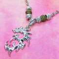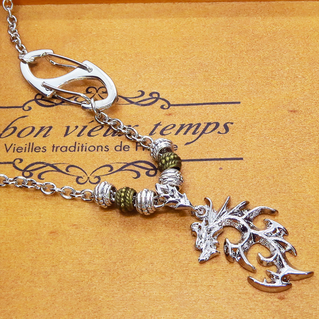 ドラゴンシルエットモチーフとカラビナ・バックルのパンクロックスタイルネックレス ロック シルバー925PLD メタルビーズ