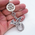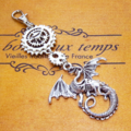 アンティークシルバー ドラゴンと歯車のスチームパンク風キーホルダー ゴシック バッグチャーム 金具変更可