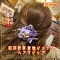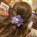 深みのある紫の着物地に、淡いラベンダー色のリボンがやさしさを添える、艶やかで繊細なヘアクリップです。