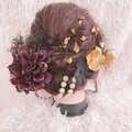成人式髪飾り☆卒業式髪飾り☆ダリア☆ゴールド☆白無垢ヘア☆着物ヘア☆プリザーブドフラワー☆かすみ草☆アーティシャルフラワー☆