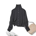 どちらも、ロングスリーブの袖口が手元でふんわりとたるむデザインが、ほっそりとした手首を演出し、全体に洗練されたニュアンスを加えます。