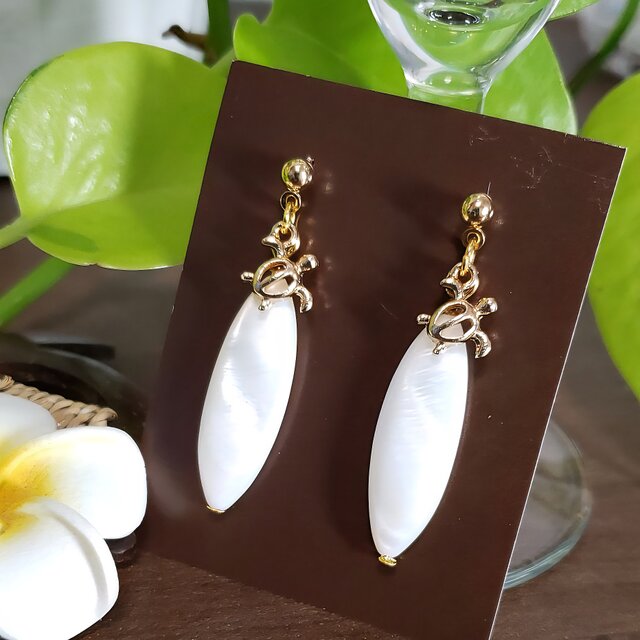 ハワイアンジュエリー❀ホワイトシェル ホヌ ポストピアス 単品 No.548