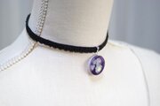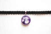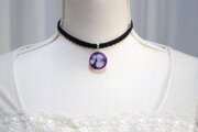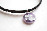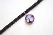 紫と白の二色が織りなす、月面の模様を思わせるデザインが優雅でクラシカルなレジンを、ベルベットリボンにタティングレースで装飾を施したチョーカーに仕上げました。