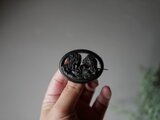 スワン 黒のジュエリー ケース付き ヴォルカナイトの白鳥ブローチ フランスアンティーク