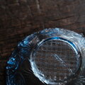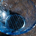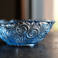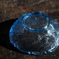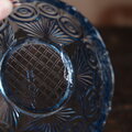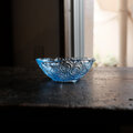 素敵な形状◆プレスガラス波縁小鉢 古民家 古道具 ブルー 暮らしに。vintage 昭和中期【傷有り】