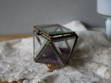 四角の底と蓋に三角形のベベルガラスが7面はめ込まれています。