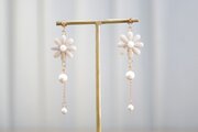 レジンアート お花とコットンパールのピアス〈名もなき花〉