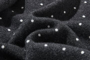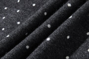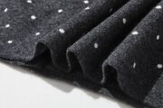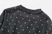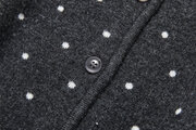 肌寒い季節に、ちょうどいい温かさと可愛さを。ウール混紡のダブルニットで編んだ、ドット柄のショートカーディガンです。深みのあるグレーに散る小さな白いドットが、大人の上品な遊び心を演出します。