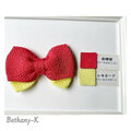 「やっとこピン」というヘアクリップにいずれかの色のリボンと上下に滑り止めをつけた乳幼児向けクリップです。