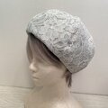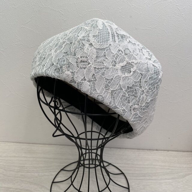 くすみグリーンのレースのベレー帽です。