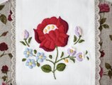 赤の薔薇柄のフランスリネンと組み合わせました。