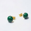 深く鮮やかなグリーンが印象的な、コンゴ産マラカイトのカボションピアスです。