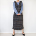 寒い日もルンルン♪のきれいめウールワンピース【ロング丈・ダークグレー×千鳥・Vネック・ノースリーブ・裏地付き】