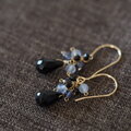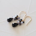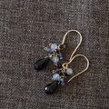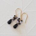 14kgf:しずく型オニキスとアイオライト・ブラックスピネルのピアス(イヤリング)№9205