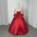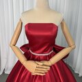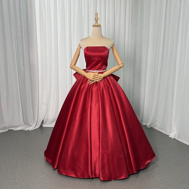 カラードレス ボルドー色 ベアトップ ロング 豪華なバックリボン 謝恩会/パーティー