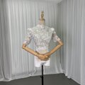 人気上昇!ボレロ 美しい花レース キラキラスパンコール 半袖 くるみボタン 可愛い 結婚式/前撮り