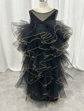 パーティードレス ブラック キャミソール+オーバードレス ラッフルフリル 演奏会/音楽会
